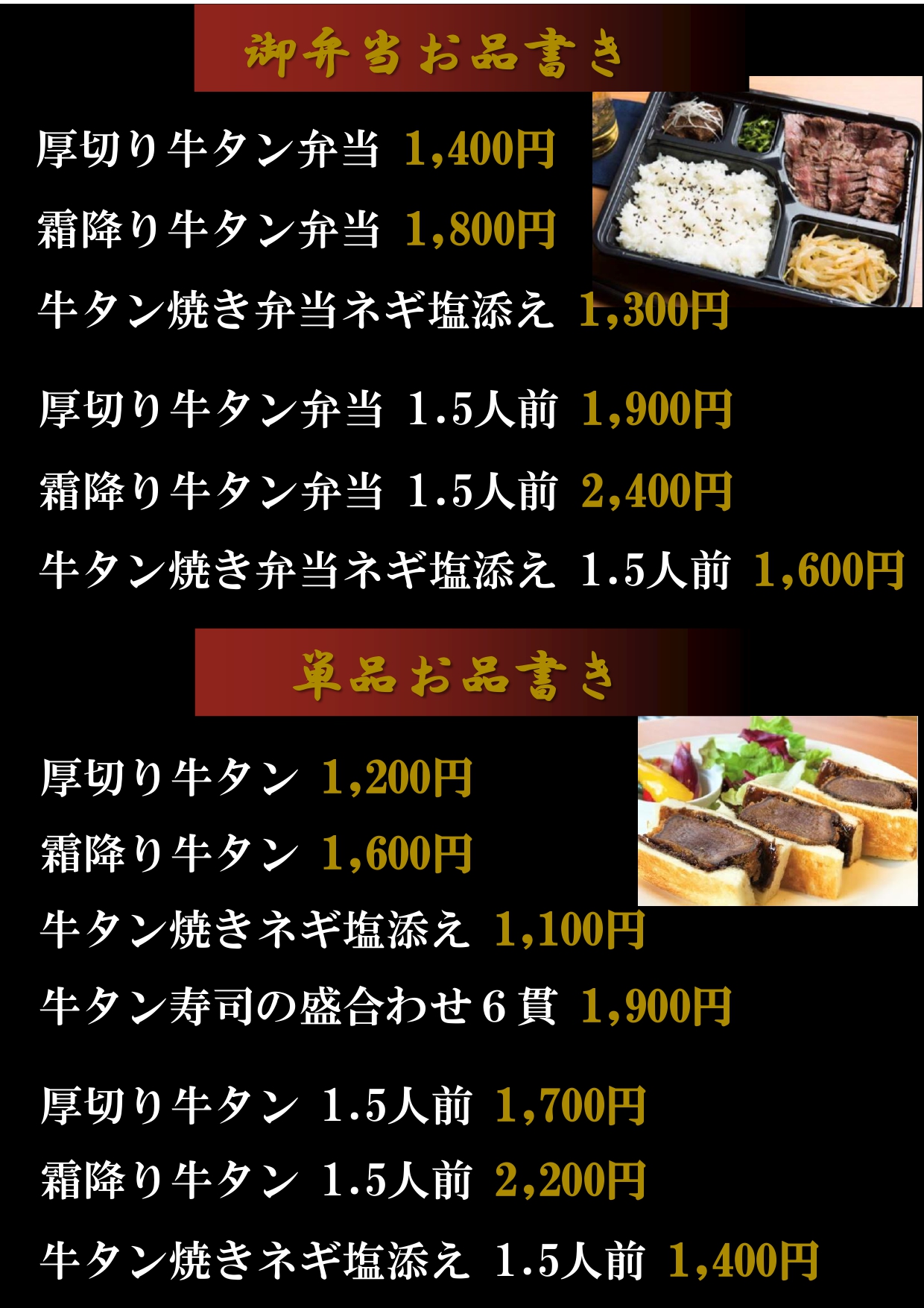 ※テイクアウトメニューでハラミ、カレー、メンチカツ、ポテトサラダ、茄子の揚げびたしが現在欠品中です。
